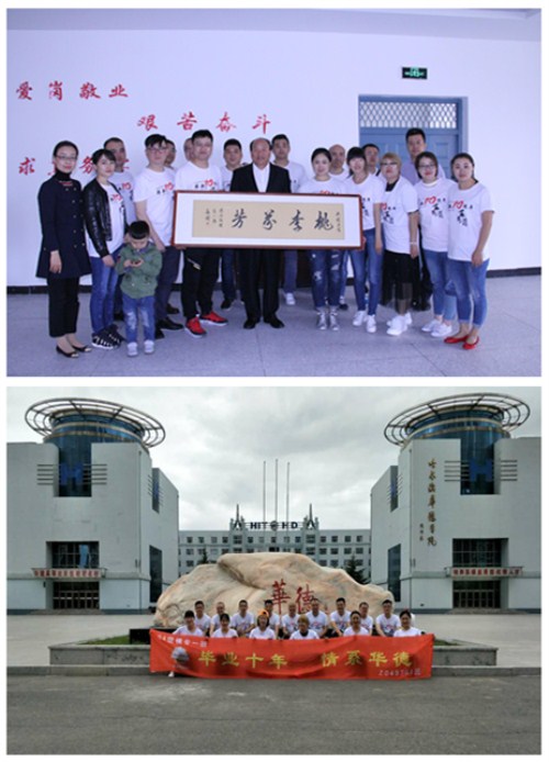 座谈结束后,校友向校长赠送“桃李芬芳”匾并合影留念,会后校友们来到第一教学楼114教室召开毕业十周年主题班会,同学们依次上台分享大学时代的回忆和送上对母校的祝福;班会结束后校友们又浏览了校园、参观了校史馆和黄炎培职业教育思想成果展览馆。