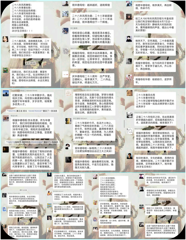 注:值此母校二十八岁生日之际,机电学子共聚云端送祝福。语言朴素,却饱含深情。形式不同,心意却相通。
