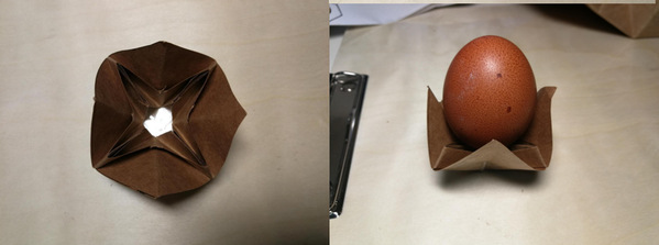 1702911班胡东睿同学作品:将折纸工艺与包装设计相结合,既达到对鸡蛋的承托保护功能,又增强了包装的美观性,让鸡蛋的包装显得更加质朴和有趣。