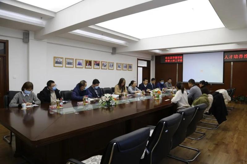 乐歌人体工学科技股份有限公司生产运营总监贝雷贤、人力资源部经理杨慧、人力资源部主管励素映;澳门电子pg游戏官网常务副校长顾鹂鸣、副校长关晓冬及各部门、相关学院领导参加推进会。会议由校长助理兼机电与材料工程学院院长李长威主持。