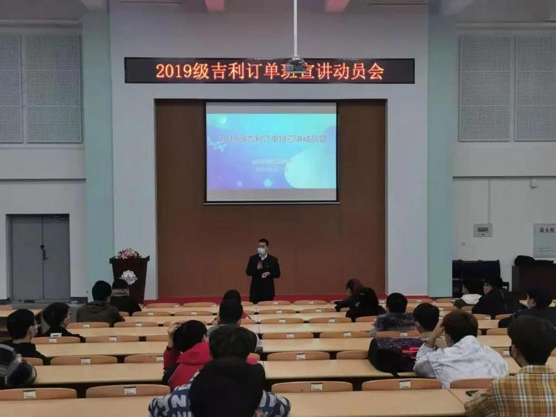 为进一步推进我院首届“雏鹰计划”学风建设工程关于毕业生精准就业的工作要求,帮助学生树立正确的就业观、择业观,搭建校企共建“直通车”,机电与材料工程学院于3月18日分2个场次在学生文化活动中心召开2019级吉利订单班宣讲动员会。学院党总支书记王郁黎、2019级辅导员及全体学生参加会议。会议由校长助理兼机电与材料工程学院院长李长威主讲。