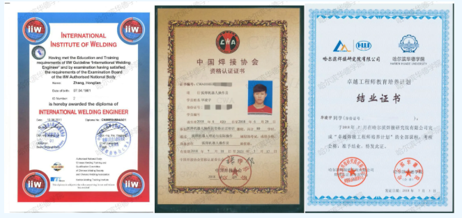 在校学习期间,可根据个性人才培养目标,考取以下相关职业资格证书:卓越焊接工程师证书、国际焊接工程师(IWE)、中国焊接协会(CWA)弧焊机器人操作员证书等。