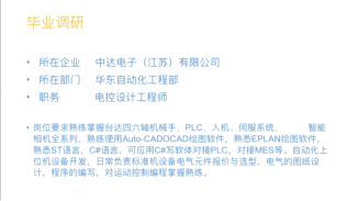 校友们首先表达了对母校的感激之情,重点针对专业人才培养目标与行业企业需求存在哪些差距;课程体系培养学生的素质、能力、知识与企业岗位素质和能力需求之间存在哪些差距;专业核心课程的教学内容是否满足企业相应岗位核心能力的要求;企业对毕业生最认可的素质和能力有哪些;最需要提升的素质和能力有哪些等问题进行汇报交流。就职于平凉理工中等专业学校的毕业校友雷武乐、就职于宁德时代新能源科技股份有限公司的毕业校友金大贺、就职于漯河有为光电科技有限公司的毕业校友翟元瑞、就职于中达电子江苏有限公司的毕业校友杜鹏,以及就职于杭州吉利汽车有限公司校友刘洋,结合工作岗位和工作体会,分别进行了详细的PPT汇报发言,对学生应具备的知识、能力、素质进行综合分析,对专业课程设置、技能竞赛和学校品牌活动等提出宝贵建议。同时,校友们均表示,未来制造业向着数字化和智能化转变,学校人才培养应紧跟行业变化,希望学校培养的学生广受用人单位欢迎,母校和学院发展越来越好。