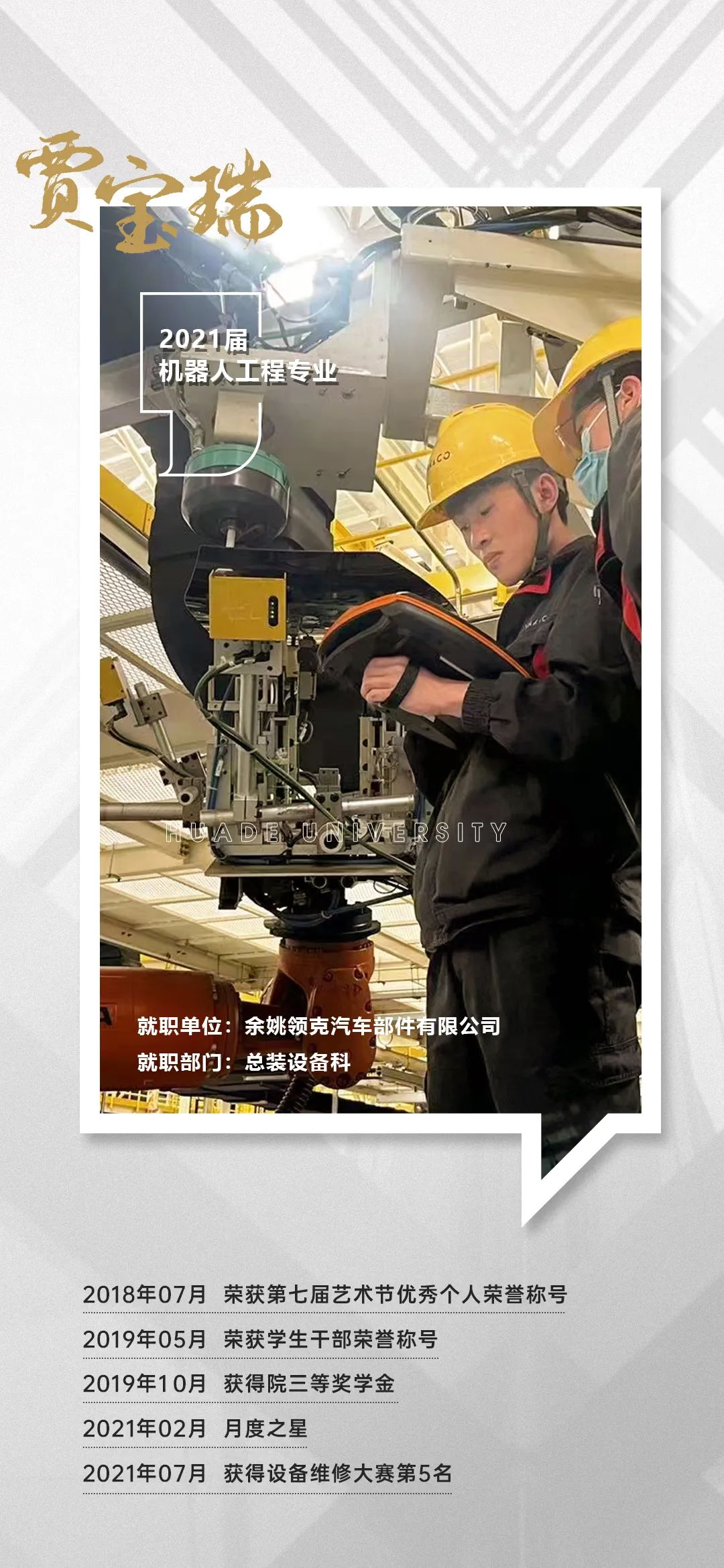 大学时光转瞬即逝,那些与青春有关的日子,贾宝瑞没有遗憾。他始终铭记学校“诚毅、求真、笃学、强技”的校训,并在工作中勤勉奋进。“此刻是最好的年华”——对于在校学子,贾宝瑞这样说,“今天做最好的自己,明天做华德的名片”,这是他对自己的期望,也是对学弟学妹们最好的祝愿。