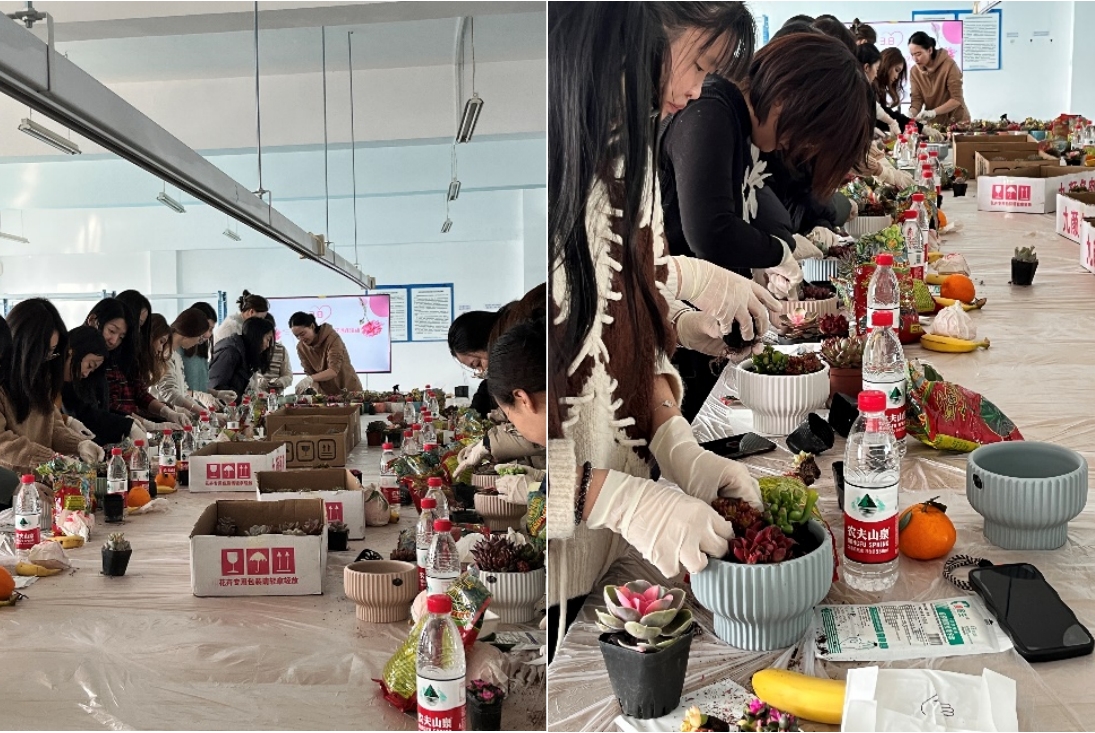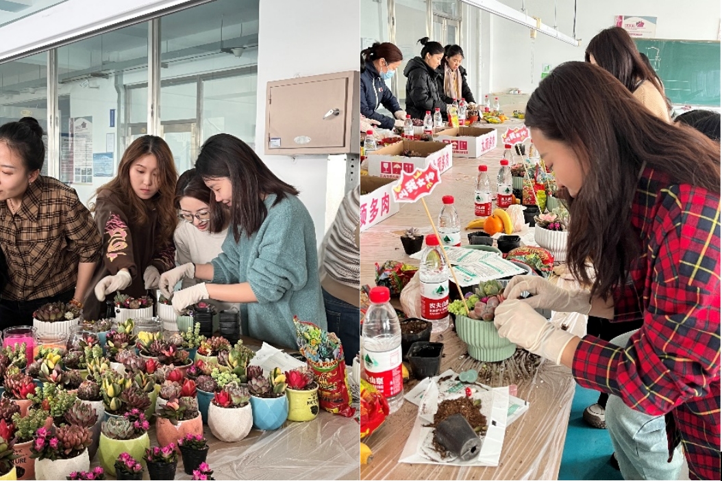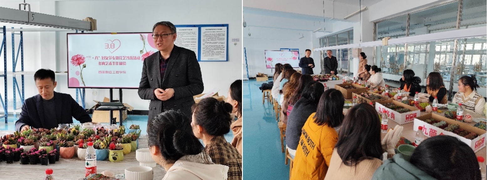 “枝头春意闹,正当好时节。”三八女神节来临之际,为丰富校园文化生活,展示我院女教职工的风采,提高女教职工的幸福感和归属感,在校、院级领导的大力支持下,3月7日中午,澳门电子pg游戏官网开展了三八妇女节主题花艺沙龙——多肉艺术手作体验活动,让老师们在美好的春光里放松身心,拥抱自然,感受节日的欢快和愜意。活动邀请教务处处长王振力、院长朱斌海,办公室副主任朱雨婷主持,全体女性教职工参加。