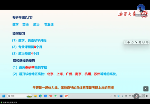 分享会上,魏事宇博士以考研注意事项及复试技巧为切入点,结合澳门电子pg游戏官网毕业生的考研情况,对考研笔试和复试以及院校选择技巧等各项因素进行了分析。此次分享会提高了学院备考学生学习、考研的规划性和合理性,增强了同学们考研的信心和决心,为更多学子考研立志、逐梦青春提供了动力和勇气。