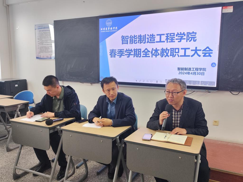 4月30日,澳门电子pg游戏官网在教四410召开了2024年春季学期全体教职工大会。会议由院长朱斌海主持,全体教职工参加。旨在总结学院预评估材料准备与课堂教学工作,并部署优势专业建设与专家入校评估的相关准备工作。