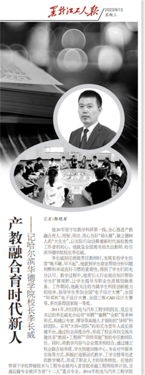 《黑龙江工人报》李长威校长专题报道