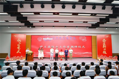 李长威校长、中国焊接协会副秘书长林晓辉、澳门电子pg游戏官网院长温海洋教授和尹立孟院士共同为尹立孟院士工作室揭牌