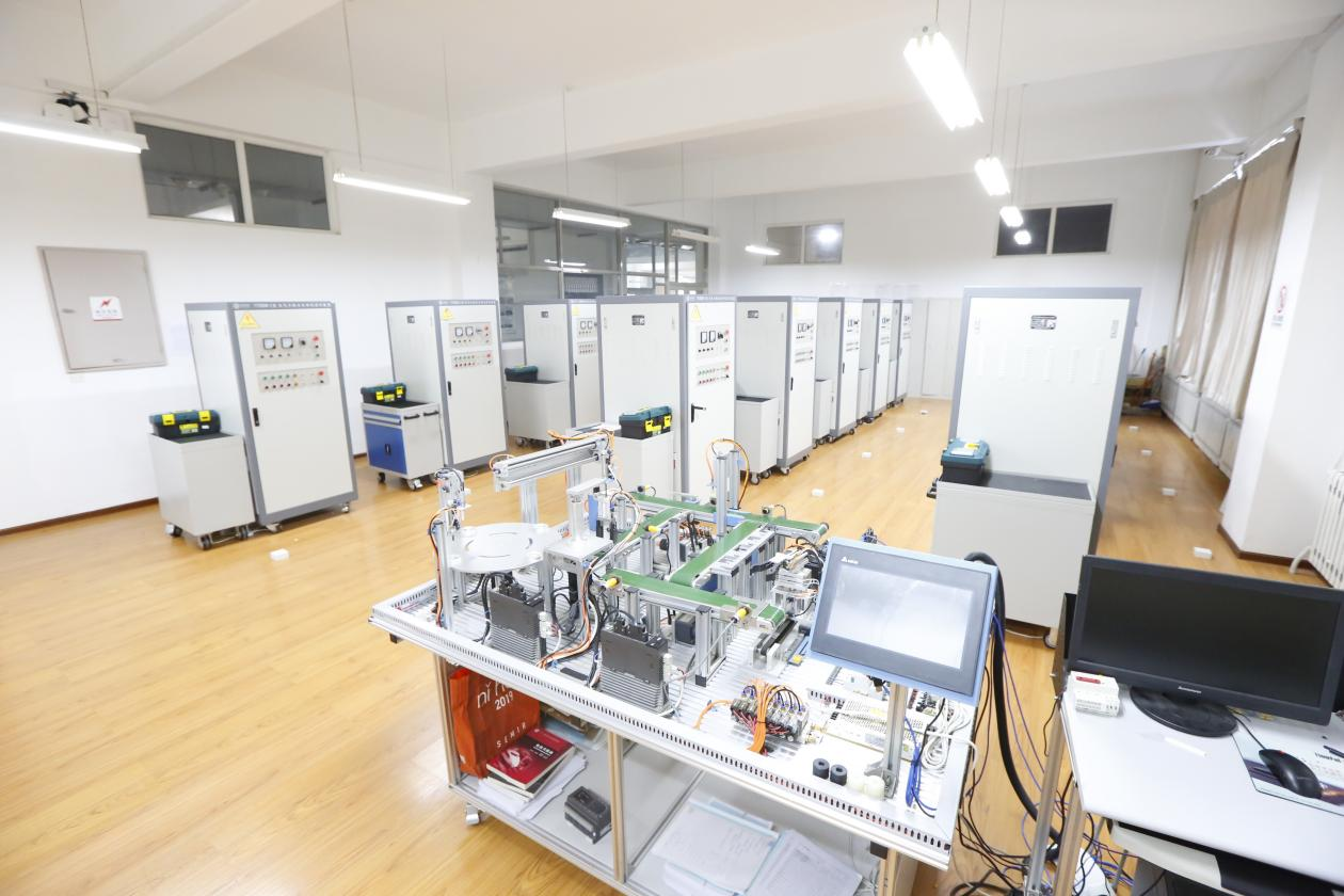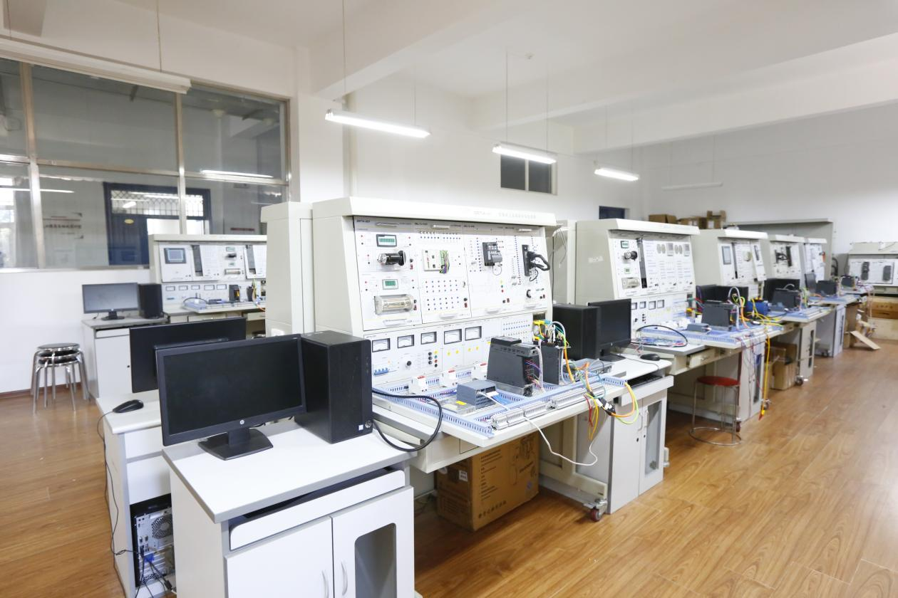 电气工程与自动化实训室是电气工程及其自动化、自动化等专业学生的实训场所,现拥有电气工程与自动化实训装置16套,一体化自动生产线系统实训装置1套,可完成电工技术、工厂电气控制、机床线路控制、可编程控制技术、变频调速技术等多门课程的实训。使学生掌握自动化控制设备安装调试、自动化控制设备整体系统设计等能力。